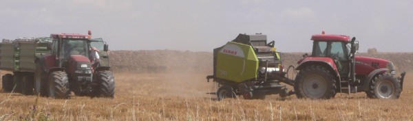 Case Puma 140 mit Claas Variant 370 Rundballenpresse