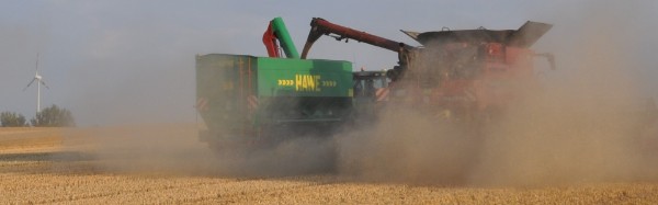 1 John Deere 8360R mit Hawe Dreiachs-Überladewagen