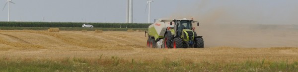 Claas Axion 950 mit Claas Quadrant 3300 FC Quaderballen-Presse