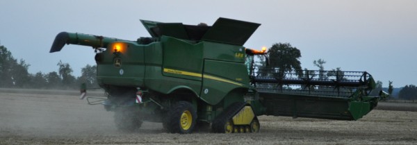 John Deere 8260 R mit Hawe Dreiachs-Überladewagen